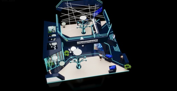 醫療的進步從來不是冷冰冰的技術迭代,而是人類用最前沿的智慧守護對健康的期盼。在人類追求健康的長河中,科技始終是最有力的助推器。本組展臺設計以科技藍與深邃黑為基調,打造一座詮釋"科技服務人類健康"這一理念的醫療展臺。尖端醫療科技的發展,終將回歸于守護每一個珍貴的生命。